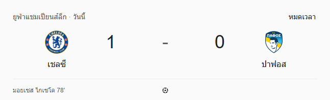 - หมดเวลา: เชลซี 1-0 ปาฟอส