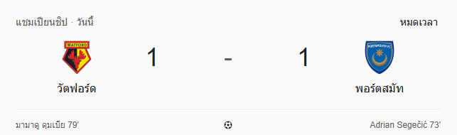 - หมดเวลา: วัตฟอร์ด 1-1 พอร์ทสมัธ