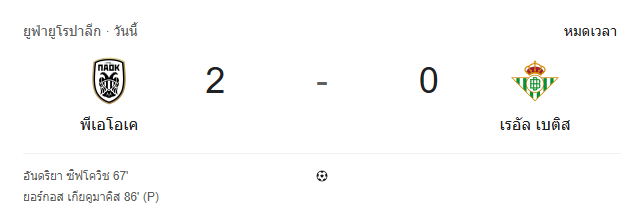 • หมดเวลา: พีเอโอเค 2-0 เรอัล เบติส
