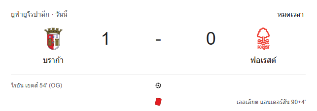 - หมดเวลา: บราก้า 1-0 ฟอเรสต์