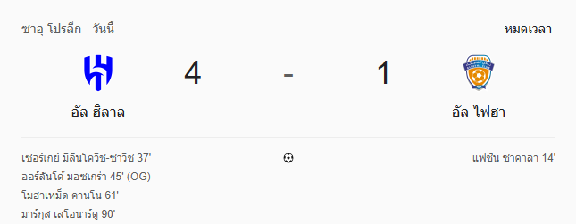 • หมดเวลา: อัล ฮิลาล 4-1 อัล ไฟฮา