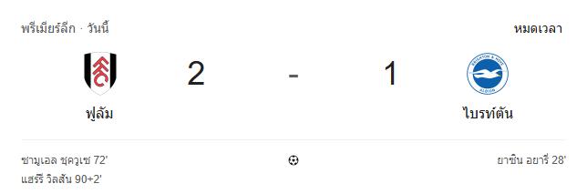 - หมดเวลา: ฟูแล่ม 2-1 ไบรท์ตัน