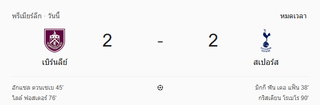- หมดเวลา: เบิร์นลีย์ 2-2 ท็อตแนม ฮ็อตสเปอร์