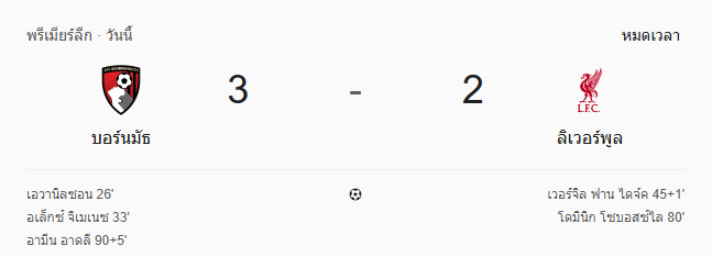 • หมดเวลา: บอร์นมัธ 3-2 ลิเวอร์พูล