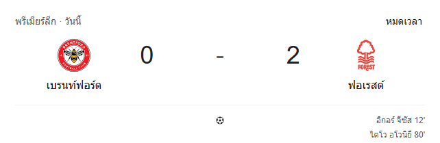 - หมดเวลา: เบรนท์ฟอร์ด 0-2 น็อตติ้งแฮม ฟอเรสต์