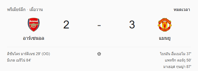 - หมดเวลา: อาร์เซนอล 2-3 แมนเชสเตอร์ ยูไนเต็ด