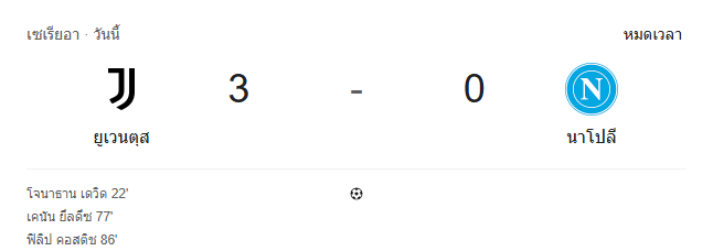 - หมดเวลา: ยูเวนตุส 3-0 นาโปลี