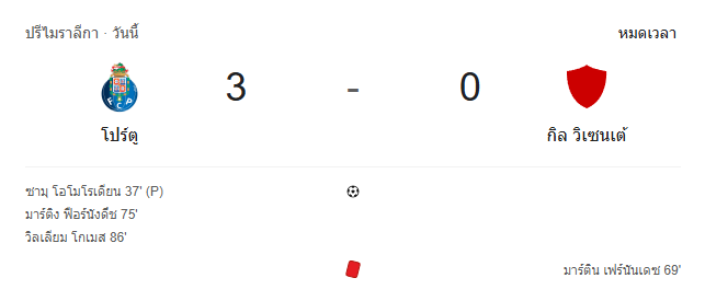 - หมดเวลา: เอฟซี ปอร์โต้ 3-0 กิล วิเซนเต้