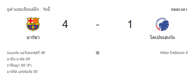 • หมดเวลา: บาร์เซโลนาเอาชนะ โคเปนเฮเกน 4-1