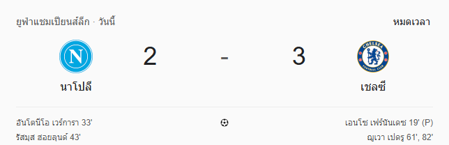 • หมดเวลา: เชลซีบุกเฉือน นาโปลี 3-2