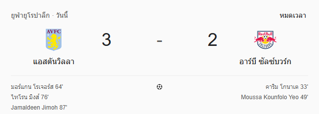 ผลบอลสด ยูโรปา ลีก ระหว่าง แอสตัน วิลล่า vs ซัลซ์บวร์ก วันนี้ 30/1/69 ดูบอลย้อนหลัง คลิปไฮไลท์ ดูบอล ยูโรปา ลีก