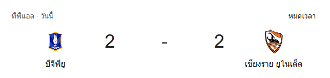 ผลบอลสด BYD SEALION 6 ลีกหนึ่ง ระหว่าง บีจี ปทุม ยูไนเต็ด vs เชียงราย ยูไนเต็ด วันนี้ 31/1/69 ดูบอลย้อนหลัง คลิปไฮไลท์ ดูบอล BYD SEALION 6 ลีกหนึ่ง