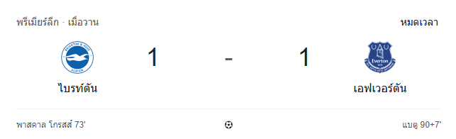ผลบอลสด พรีเมียร์ลีก อังกฤษ ระหว่าง ไบรท์ตัน vs เอฟเวอร์ตัน วันนี้ 31/1/69 ดูบอลย้อนหลัง คลิปไฮไลท์ ดูบอล พรีเมียร์ลีก อังกฤษ