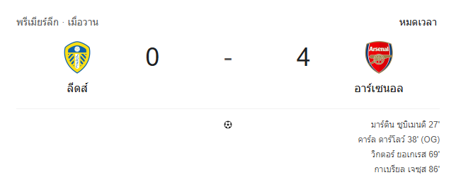 ผลบอลสด พรีเมียร์ลีก อังกฤษ ระหว่าง ลีดส์ ยูไนเต็ด vs อาร์เซนอล วันนี้ 31/1/69 ดูบอลย้อนหลัง คลิปไฮไลท์ ดูบอล พรีเมียร์ลีก อังกฤษ