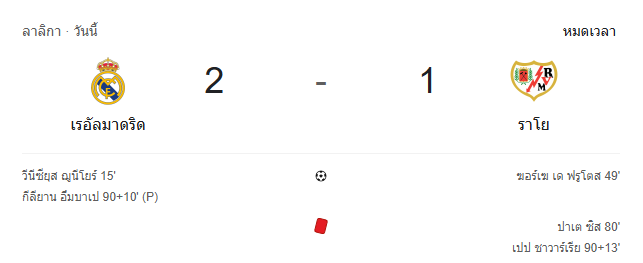 - หมดเวลา: เรอัล มาดริด เฉือนชนะ ราโย บาเยกาโน 2-1