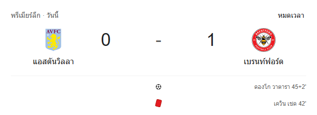 ชัยชนะนัดนี้คือ 3 แต้มล้ำค่าสำหรับเบรนท์ฟอร์ด ที่แสดงให้เห็นถึงความเด็ดขาดและวินัยเกมรับ ขณะที่แอสตัน วิลล่าต้องกลับไปทบทวนเกมรุกอย่างหนัก เพราะแม้จะครองเกมและสร้างโอกาสมากมาย แต่กลับไร้ความเฉียบคมในจังหวะสุดท้าย