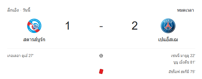 - หมดเวลา: สตราสบูร์ก แพ้ ปารีส แซงต์-แชร์กแมง 1-2