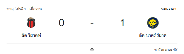- หมดเวลา: อัล ริยาดห์ แพ้ อัล นาสเซอร์ 0-1