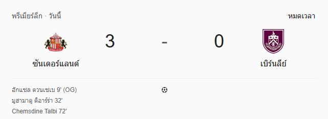 ผลบอลสด พรีเมียร์ลีก อังกฤษ ระหว่าง ซันเดอร์แลนด์ vs เบิร์นลีย์ วันนี้ 3/2/69 ดูบอลย้อนหลัง คลิปไฮไลท์ ดูบอล พรีเมียร์ลีก อังกฤษ