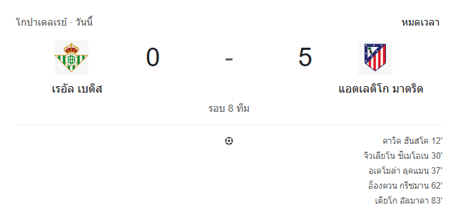 ผลบอลสด โกปา เดล เรย์ ระหว่าง เรอัล เบติส vs แอตมาดริด วันนี้ 6/2/69 ดูบอลย้อนหลัง คลิปไฮไลท์ ดูบอล โกปา เดล เรย์