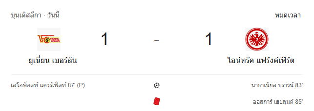 ดูบอลสดบุนเดสลีกา ถ่ายทอดสด อูนิโอน เบอร์ลิน พบ ไอน์ทรัค แฟร้งค์เฟิร์ต 6/2/69