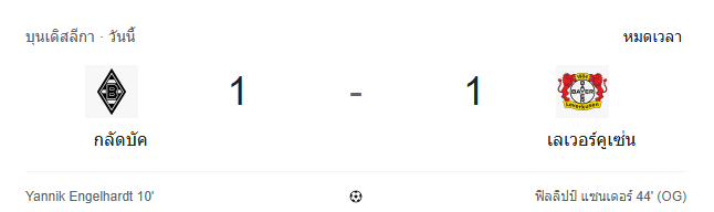 ดูบอลสดบุนเดสลีกา ถ่ายทอดสด โบรุสเซีย มึนเช่นกลัดบัค พบ ไบเออร์ เลเวอร์คูเซ่น 7/2/69