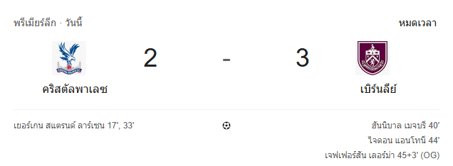 ผลบอลสด พรีเมียร์ลีก อังกฤษ ระหว่าง คริสตัล พาเลซ vs เบิร์นลีย์ วันนี้ 12/2/69 ดูบอลย้อนหลัง คลิปไฮไลท์ ดูบอล พรีเมียร์ลีก อังกฤษ