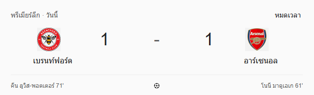 ผลบอลสด พรีเมียร์ลีก อังกฤษ ระหว่าง เบรนท์ฟอร์ด vs อาร์เซนอล วันนี้ 13/2/69 ดูบอลย้อนหลัง คลิปไฮไลท์ ดูบอล พรีเมียร์ลีก อังกฤษ