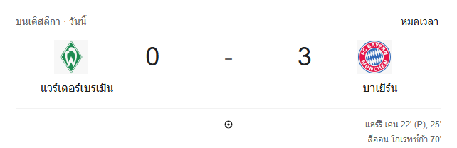 ผลบอลสด บุนเดสลีกา ระหว่าง แวร์เดอร์ เบรเมน vs บาเยิร์น มิวนิค วันนี้ 14/2/69 ดูบอลย้อนหลัง คลิปไฮไลท์ ดูบอล บุนเดสลีกา
