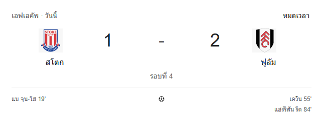 ผลบอลสด เอฟเอ คัพ อังกฤษ ระหว่าง สโต๊ค ซิตี้ vs ฟูแล่ม วันนี้ 15/2/69 ดูบอลย้อนหลัง คลิปไฮไลท์ ดูบอล เอฟเอ คัพ อังกฤษ