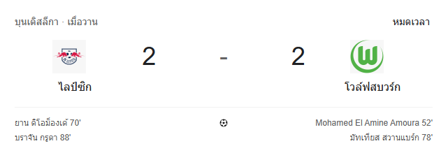 ดูบอลสดบุนเดสลีกา ถ่ายทอดสด แอร์เบ ไลป์ซิก พบ โวล์ฟสบวร์ก 15/2/69