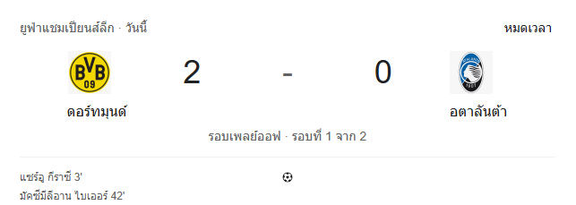 ผลบอลสด ยูฟ่า แชมเปี้ยนส์ ลีก ระหว่าง โบรุสเซีย ดอร์ทมุนด์ vs อตาลันต้า วันนี้ 18/2/69 ดูบอลย้อนหลัง คลิปไฮไลท์ ดูบอล ยูฟ่า แชมเปี้ยนส์ ลีก