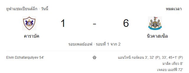 ผลบอลสด ยูฟ่า แชมเปี้ยนส์ ลีก ระหว่าง การาบัค vs นิวคาสเซิ่ล วันนี้ 19/2/69 ดูบอลย้อนหลัง คลิปไฮไลท์ ดูบอล ยูฟ่า แชมเปี้ยนส์ ลีก