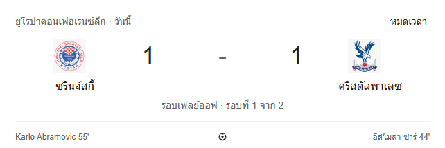 ผลบอลสด ยูโรปา คอนเฟอเรนซ์ ลีก ระหว่าง ซรินสกี้ vs คริสตัล พาเลซ วันนี้ 20/2/69 ดูบอลย้อนหลัง คลิปไฮไลท์ ดูบอล ยูโรปา คอนเฟอเรนซ์ ลีก