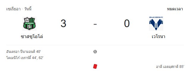 ผลบอลสด กัลโช่ เซเรีย อา ระหว่าง ซาสซูโอโล่ vs เวโรน่า วันนี้ 21/2/69 ดูบอลย้อนหลัง คลิปไฮไลท์ ดูบอล กัลโช่ เซเรีย อา