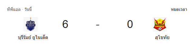 • หมดเวลา: บุรีรัมย์ ยูไนเต็ด 6-0 สุโขทัย