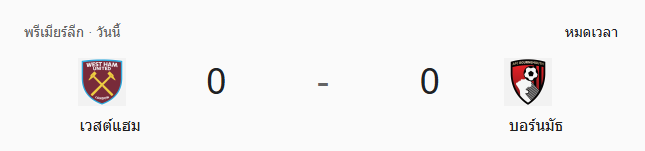 ผลบอลสด พรีเมียร์ลีก อังกฤษ ระหว่าง เวสต์แฮม vs บอร์นมัธ วันนี้ 22/2/69 ดูบอลย้อนหลัง คลิปไฮไลท์ ดูบอล พรีเมียร์ลีก อังกฤษ