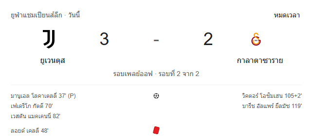 • หมดเวลา: ยูเวนตุส 3-2 กาลาตาซาราย