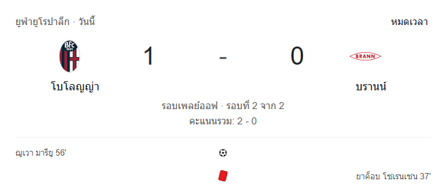 ผลบอลสด ยูโรปา ลีก ระหว่าง โบโลญญ่า vs บรานน์ วันนี้ 27/2/69 ดูบอลย้อนหลัง คลิปไฮไลท์ ดูบอล ยูโรปา ลีก