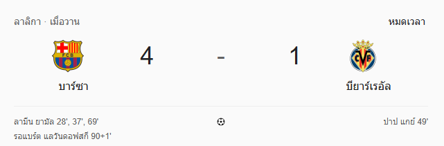 ผลบอลสด ลาลีกา สเปน ระหว่าง บาร์เซโลน่า vs บียาร์เรอัล วันนี้ 28/2/69 ดูบอลย้อนหลัง คลิปไฮไลท์ ดูบอล ลาลีกา สเปน