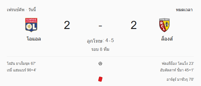 ผลบอลสด เฟร้นช์ คัพ ระหว่าง โอลิมปิก ลียง vs ล็องส์ วันนี้ 6/3/69 ดูบอลย้อนหลัง คลิปไฮไลท์ ดูบอล เฟร้นช์ คัพ
