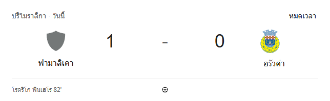 เสียงนกหวีดสุดท้ายดังขึ้นพร้อมสกอร์ ฟามาลิกัว 1-0 อารัวก้า เกมนี้แม้จะเป็นแมตช์ที่สูสี แต่ความเฉียบคมของ Rodrigo Pinheiro กลายเป็นจุดเปลี่ยนสำคัญที่พาทีมคว้าสามแต้มได้สำเร็จ ชัยชนะครั้งนี้ถือเป็นผลการแข่งขันที่สำคัญสำหรับฟามาลิกัวในศึก ซูเปอร์ลีกา โปรตุเกส ขณะที่อารัวก้าต้องกลับไปแก้ไขเกมรุกเพื่อกลับมาทำผลงานให้ดีขึ้นในนัดถัดไป