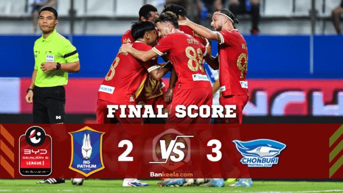 ศึกฟุตบอล BYD SEALION 6 ไทยลีก 1 ระหว่าง บีจี ปทุม ยูไนเต็ด พบ ชลบุรี เอฟซี กลายเป็นหนึ่งในเกมสุดมันส์ของสัปดาห์ หลังทั้งสองทีมเปิดเกมแลกกันดุเดือดตลอด 90 นาที ก่อนจะเป็น ชลบุรี เอฟซี ที่บุกเฉือนเอาชนะไปอย่างสุดระทึก 3-2 ทำเอาแฟนบอลที่ติดตาม ผลบอลสด ได้ลุ้นกันแบบหัวใจเต้นแรงจนวินาทีสุดท้ายของเกม