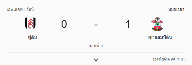 - หมดเวลา: ฟูแล่ม 0-1 เซาแธมป์ตัน