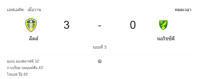 ค่ำคืนแห่งศึก เอฟเอ คัพ อังกฤษ รอบที่ 5 กลายเป็นโชว์ฟอร์มสุดเดือดของ ลีดส์ ยูไนเต็ด ที่เปิดบ้านไล่ถล่ม นอริช ซิตี้ 3-0 แบบขาดลอย ทำให้แฟนบอลที่เกาะติด ผลบอลสด ได้เห็นเกมรุกอันดุดันของทัพ “ยูงทอง” ที่เดินหน้ากดดันตั้งแต่ต้นเกมจนจบ พร้อมปิดบัญชีด้วยชัยชนะที่เด็ดขาด