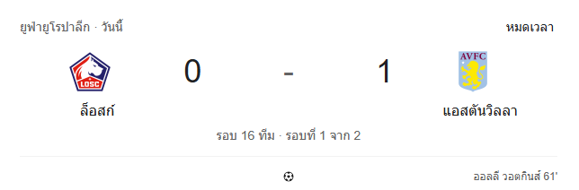 - หมดเวลา: ลีลล์ 0-1 แอสตัน วิลลา ⚽