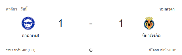 ผลบอลสด ลาลีกา สเปน ระหว่าง อลาเบส vs บียาร์เรอัล วันนี้ 14/3/69 ดูบอลย้อนหลัง คลิปไฮไลท์ ดูบอล ลาลีกา สเปน