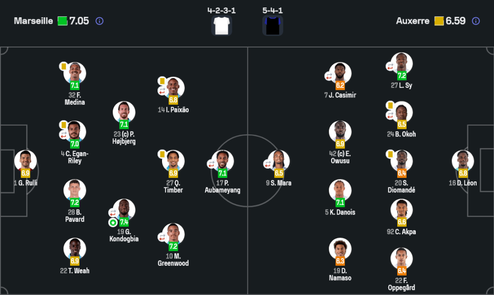 กงด็อกเบียคือหัวใจของแดนกลางมาร์กเซยในเกมนี้ เขาคุมจังหวะได้แน่น ตัดเกมได้ดี และช่วยให้ทีมไม่เสียรูปในช่วงที่โอแซร์พยายามสวนกลับ คะแนน 7.4 จึงไม่ใช่เรื่องเกินจริง เพราะนี่คือคนที่วางฐานให้ทีมเก็บคลีนชีตและสามแต้มสำคัญ