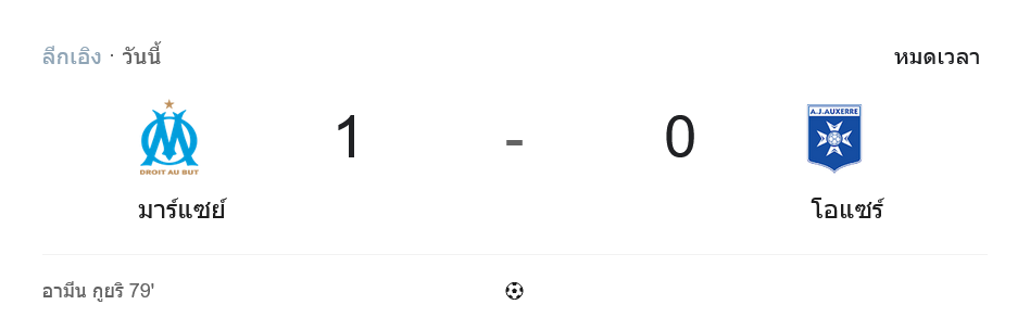 บ้านผลบอล สรุปหลังเกม ลีกเอิง ฝรั่งเศส เดือดถึงท้ายเกม กูอิรี่ซัดปลิดชีพ โอแซร์พ่ายมาร์กเซย 0-1 ศึกบนตารางยังลุ้นหนัก