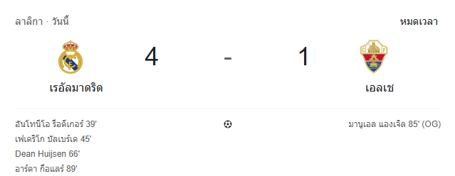 - หมดเวลา: เรอัล มาดริด 4-1 เอลเช